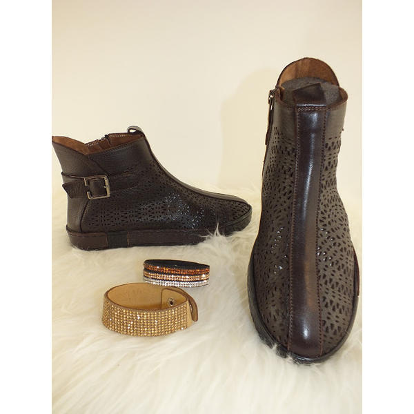 Ankle Boot Damen Echte Leder Dunkel Braun