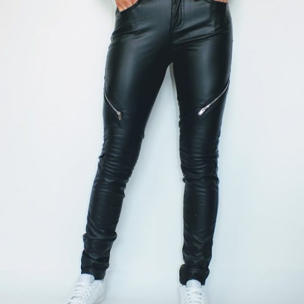 Hose Damen Leder Optik Skinny Reißverschluss Schwarz
