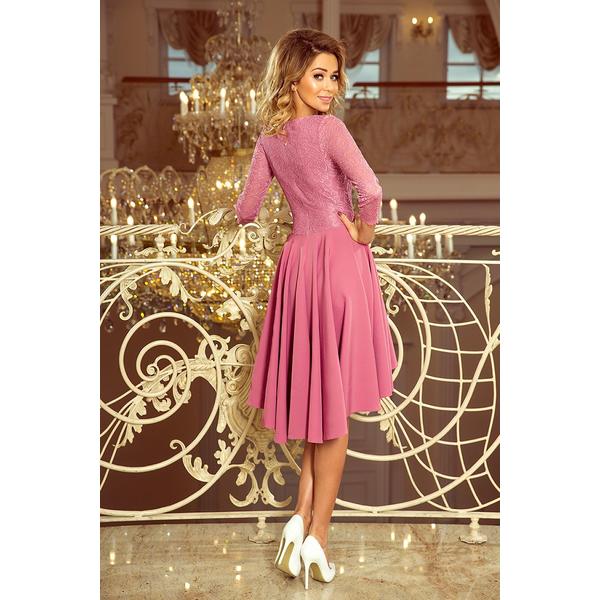 Kleid Damen Abendkleid kurz mit lang Spitze Ärmel A-Linie Pink Dunkel Rosa Violett