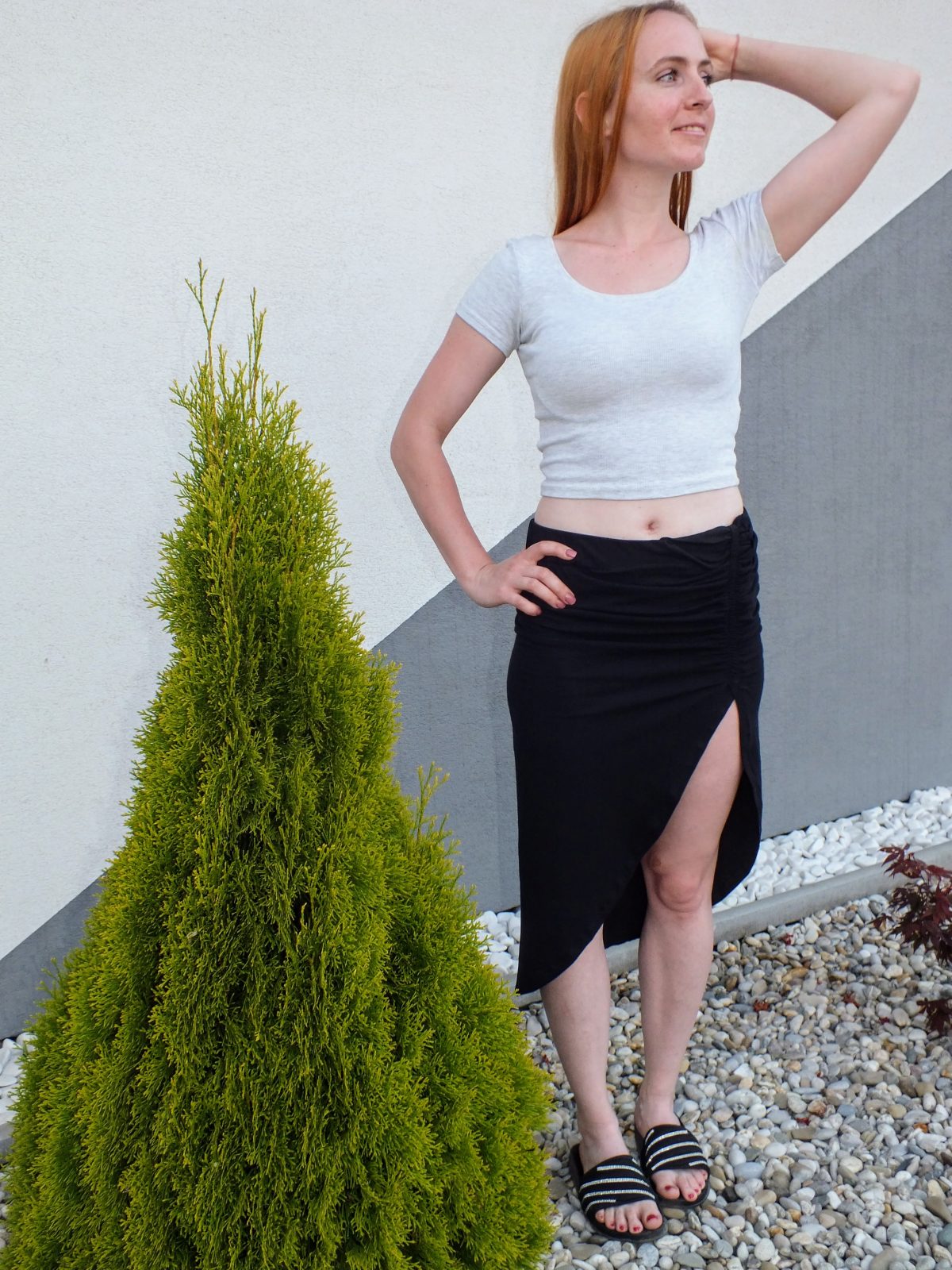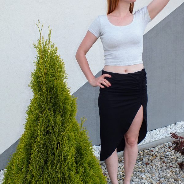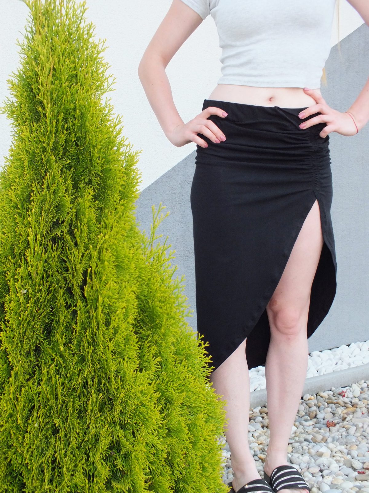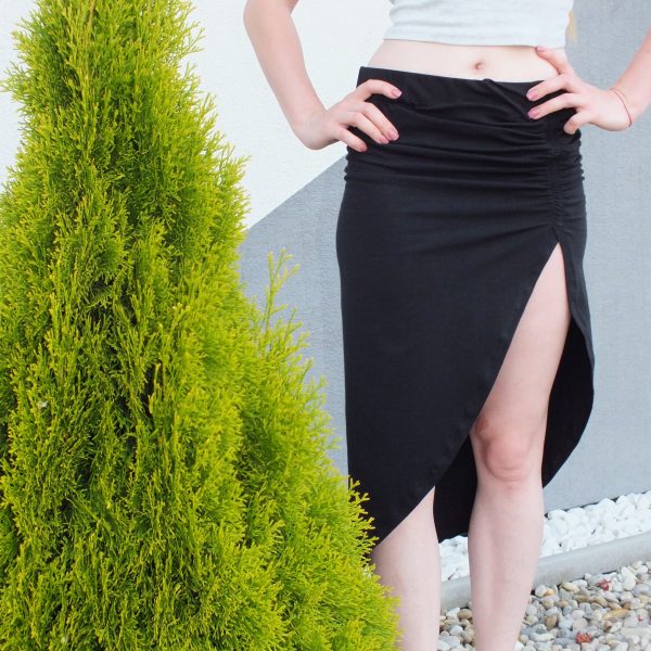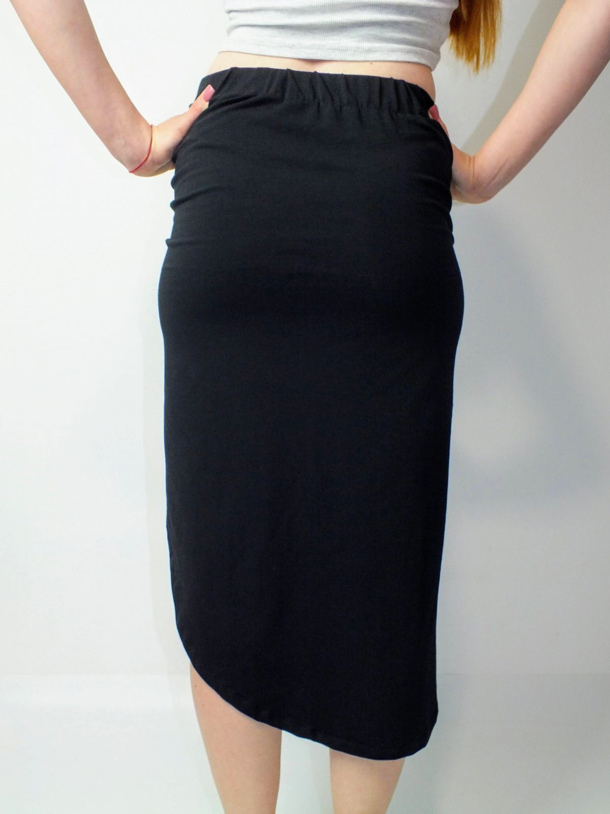 Rock Damen Asymmetrisch Unter Knien Schwarz